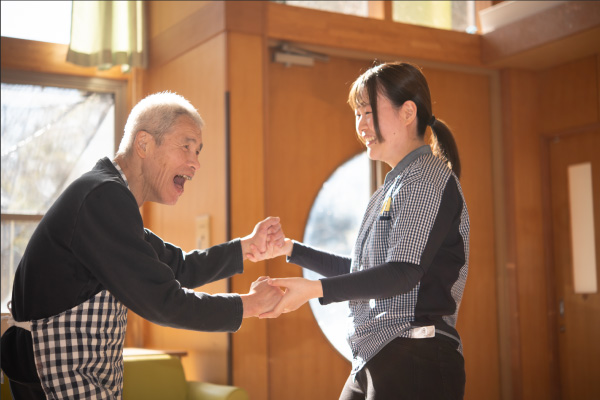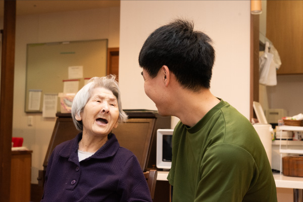 介護員として毎日入居者様と向き合い、人とのつながりを感じ、自分自身も成長させていただいています。」